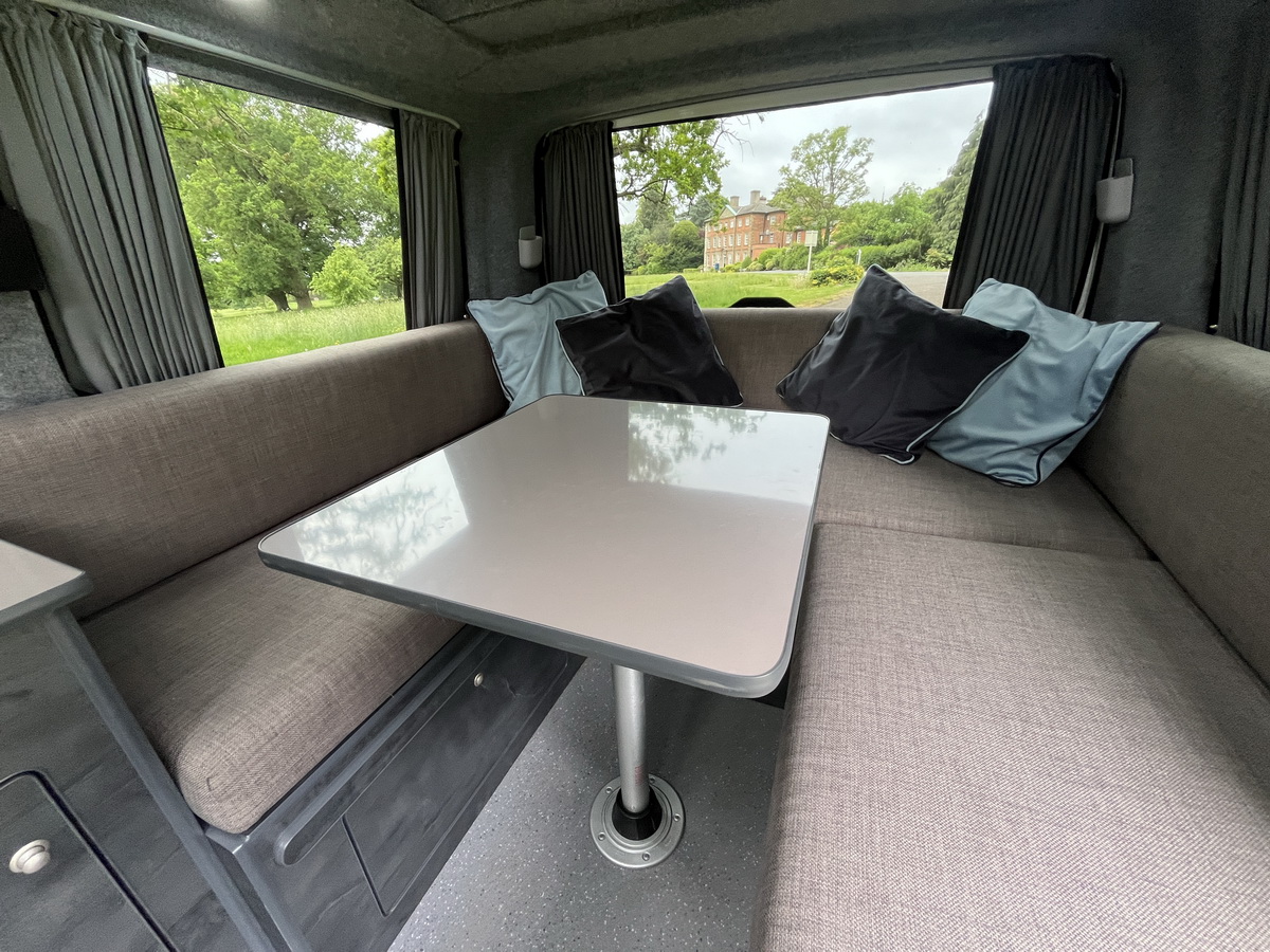 The U-shape seating quickly converts into a generous full-width double bed, with plenty of storage space beneath the seats. This arrangement offers greater versatility and a more open-plan interior layout, making the Iconic U-Shape ideal for couples, weekend adventurers or anyone wanting a camper interior that feels spacious and comfortable.