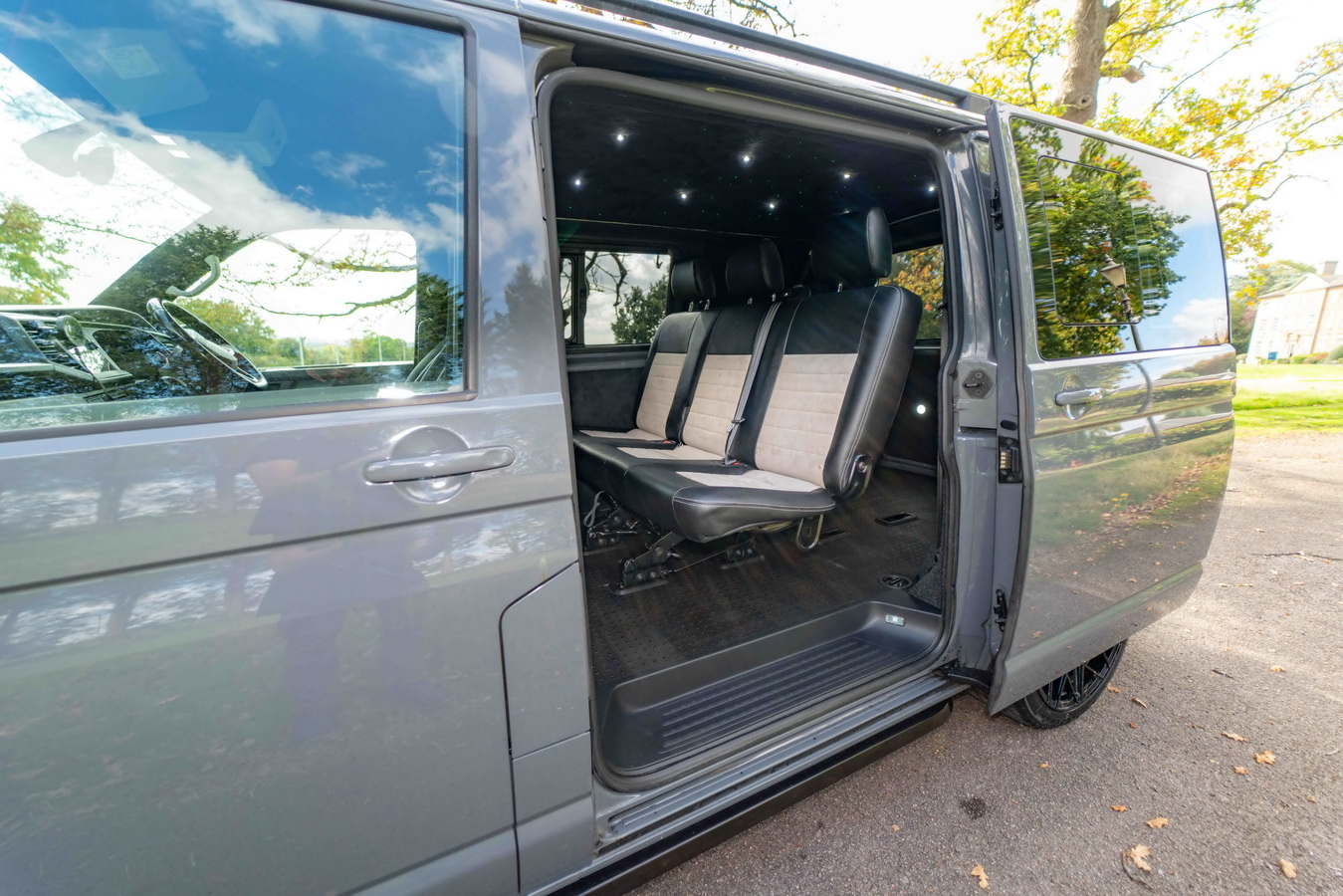 The conversion begins with all the benefits of our Starter Pack: full thermal insulation, professional carpet lining, hardwearing flooring or rubber mat, LED lighting and two opening privacy-tinted side windows. From there, the interior is transformed with the installation of a second row of genuine Volkswagen seats, available in three configurations to suit your needs: