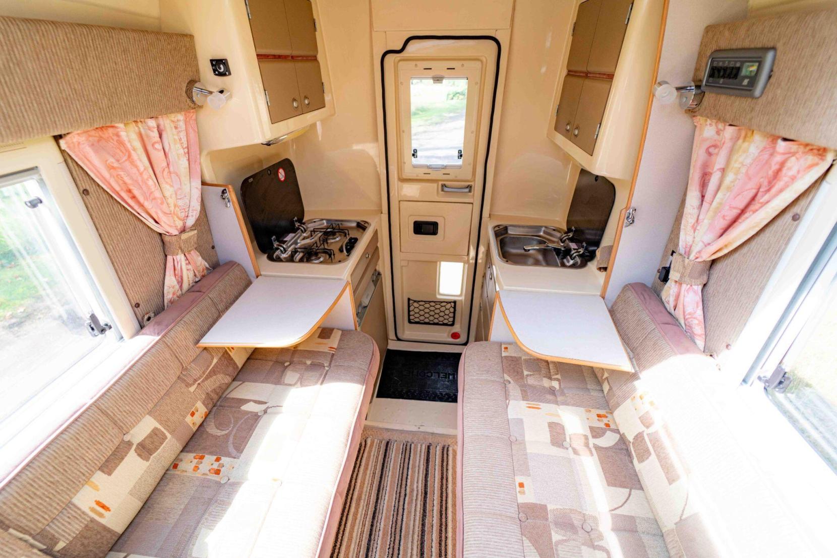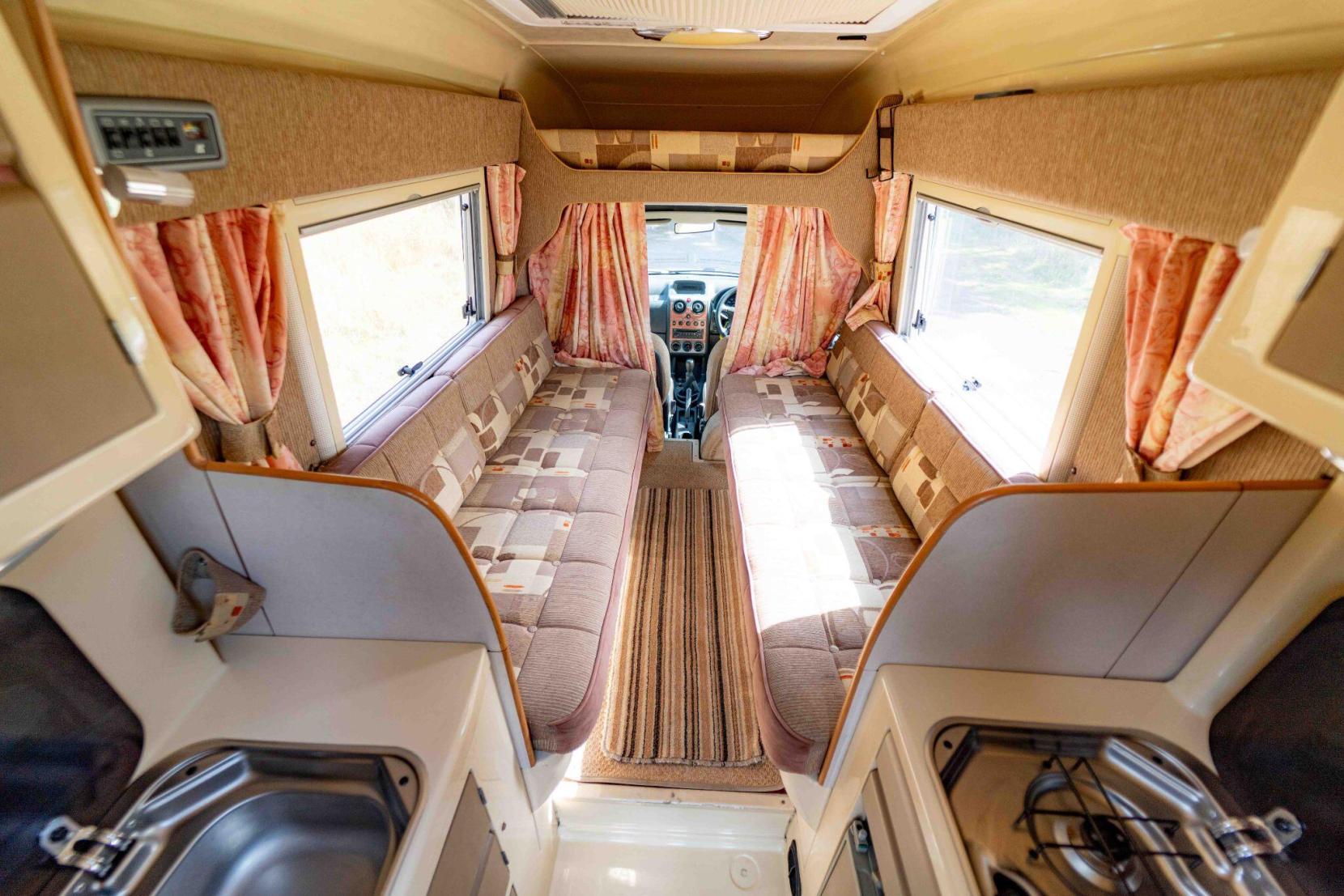 This versatile camper offers comfort and practicality, perfect for adventures on the road.