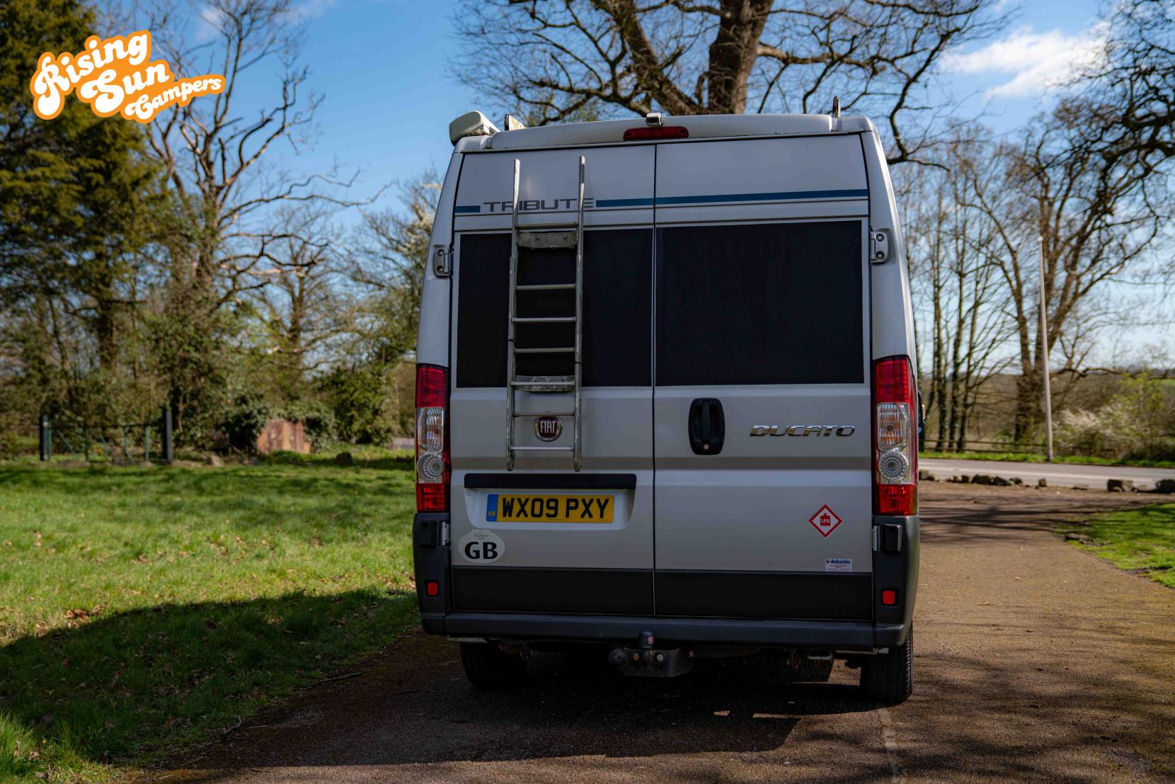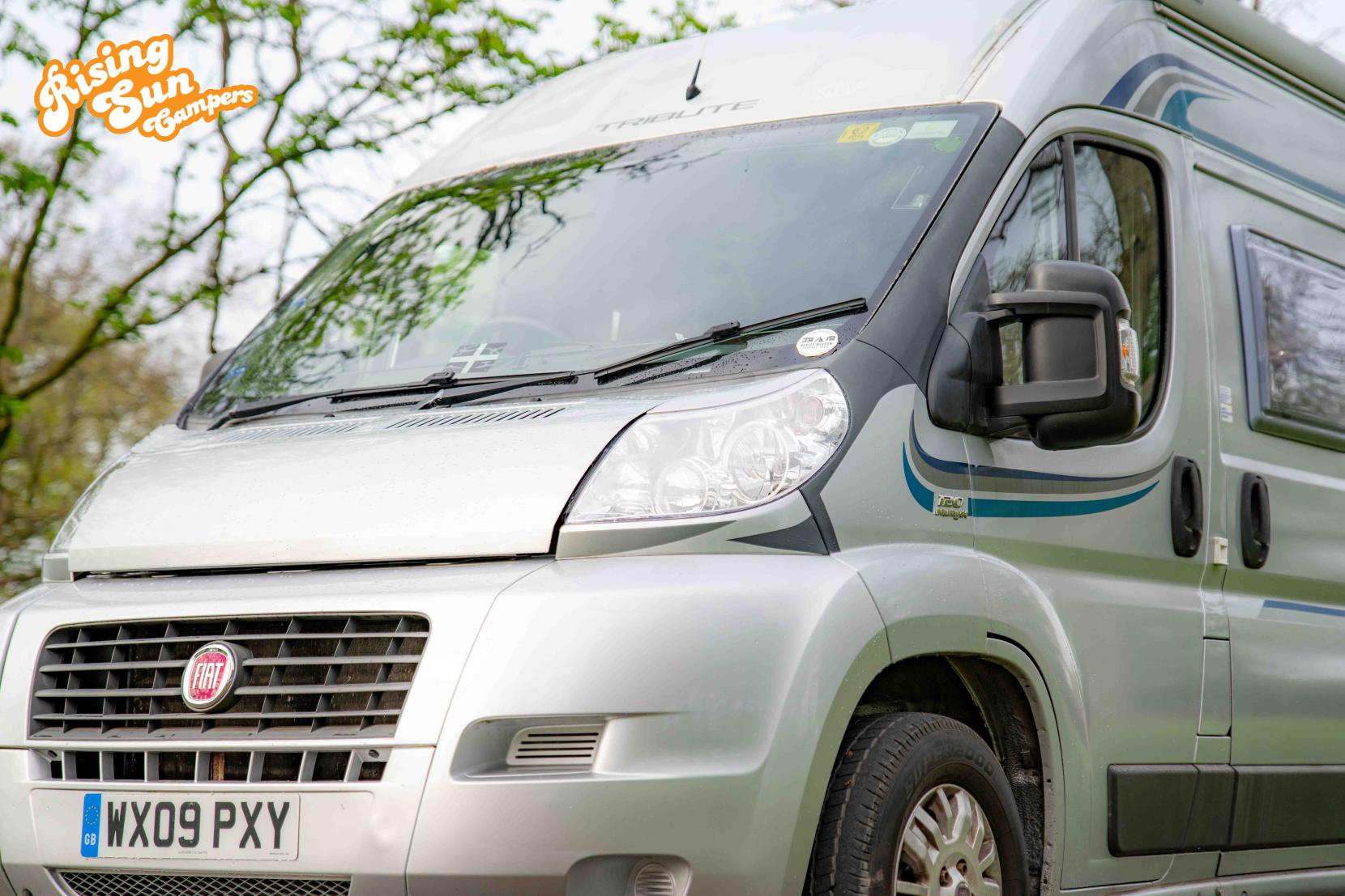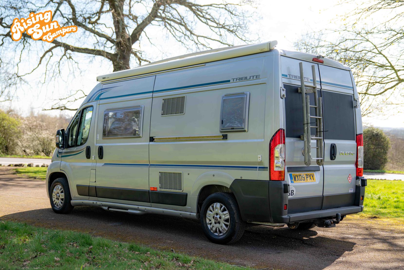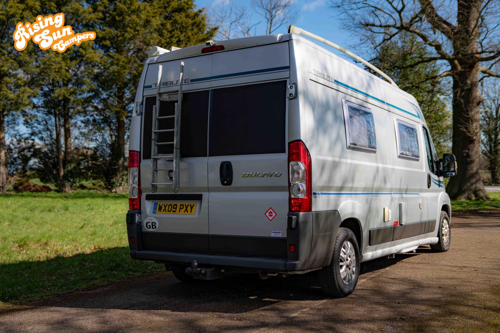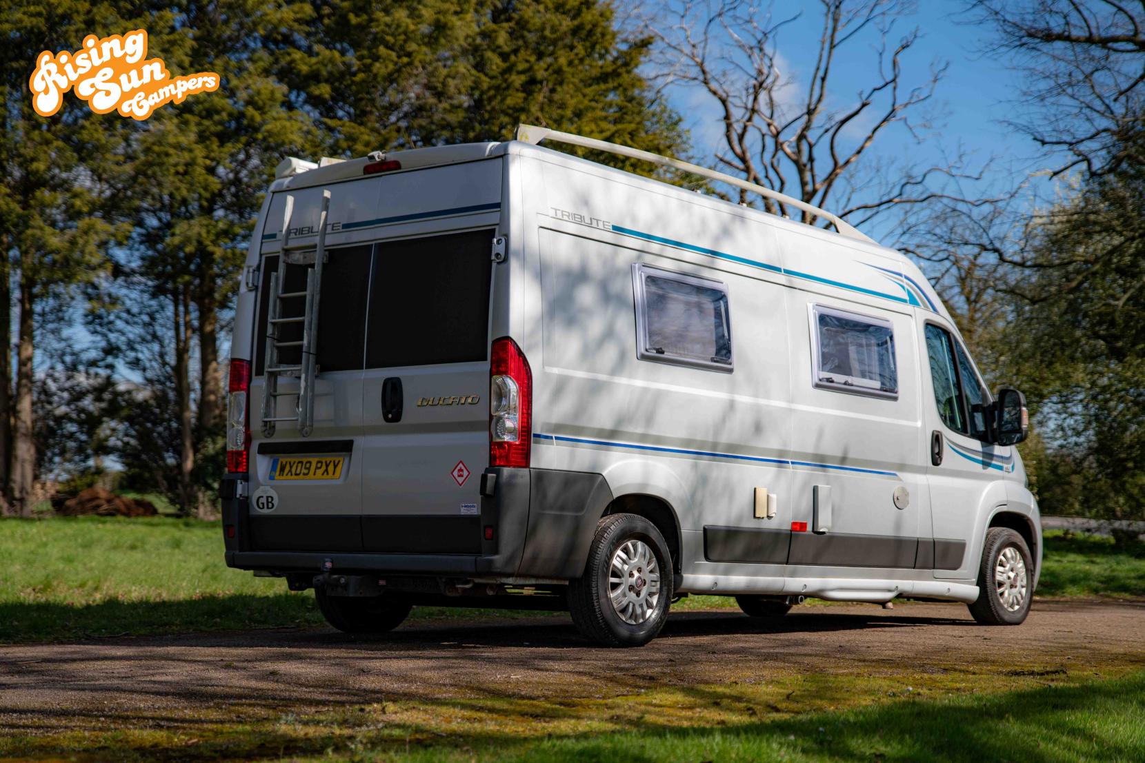 This Trigano Tribute sleeps two, has three seatbelts, is 6m long and has a gross weight of 3300kg. It is a High Top Van Conversion based on a 2.3 litre diesel engined Fiat Ducato with a manual gearbox and is Right Hand Drive.