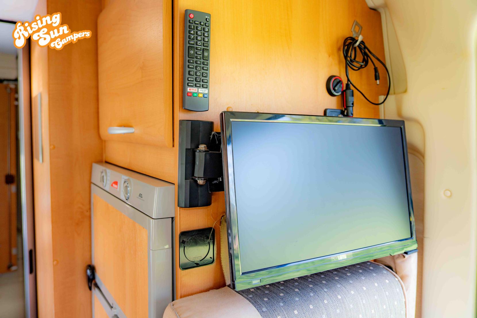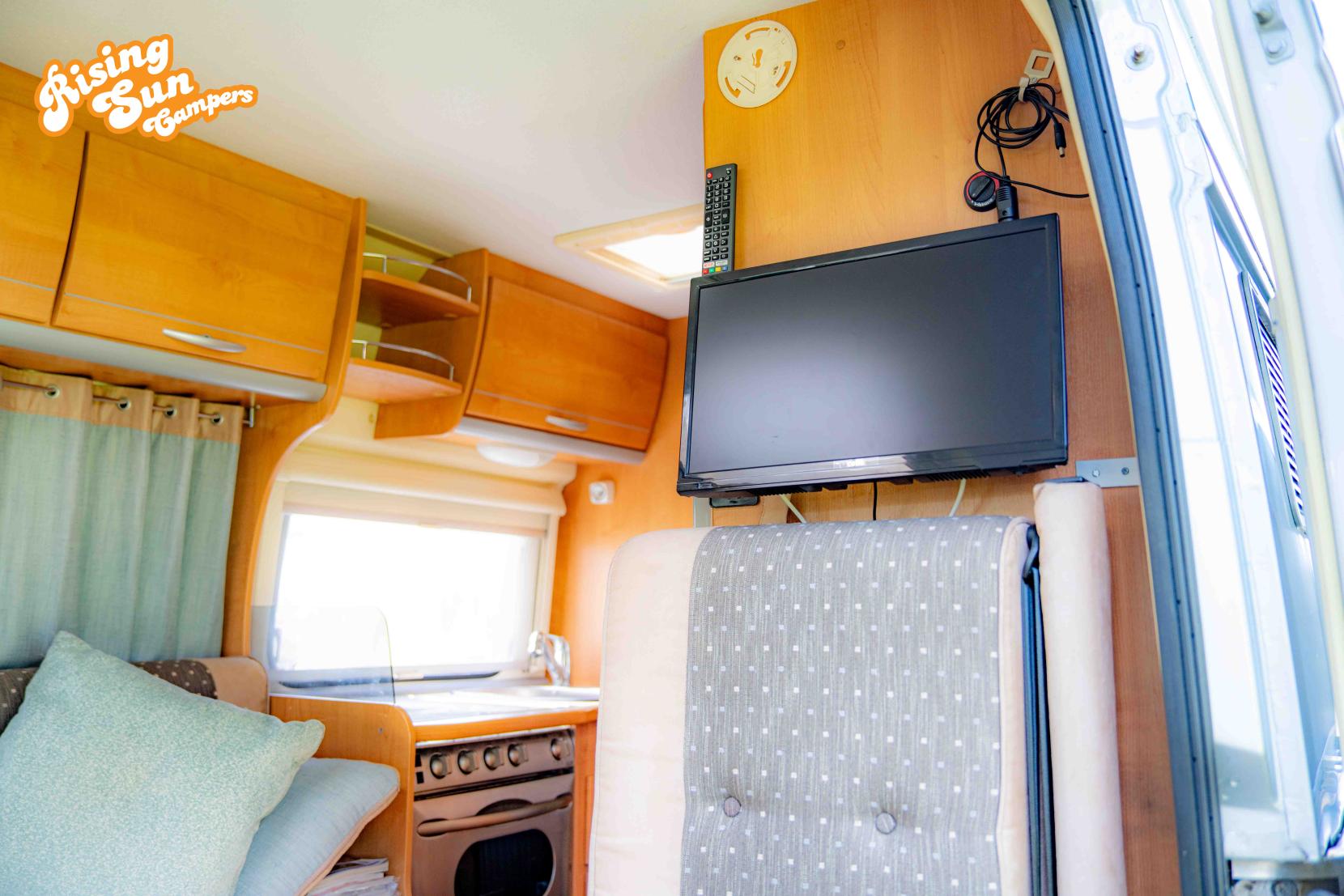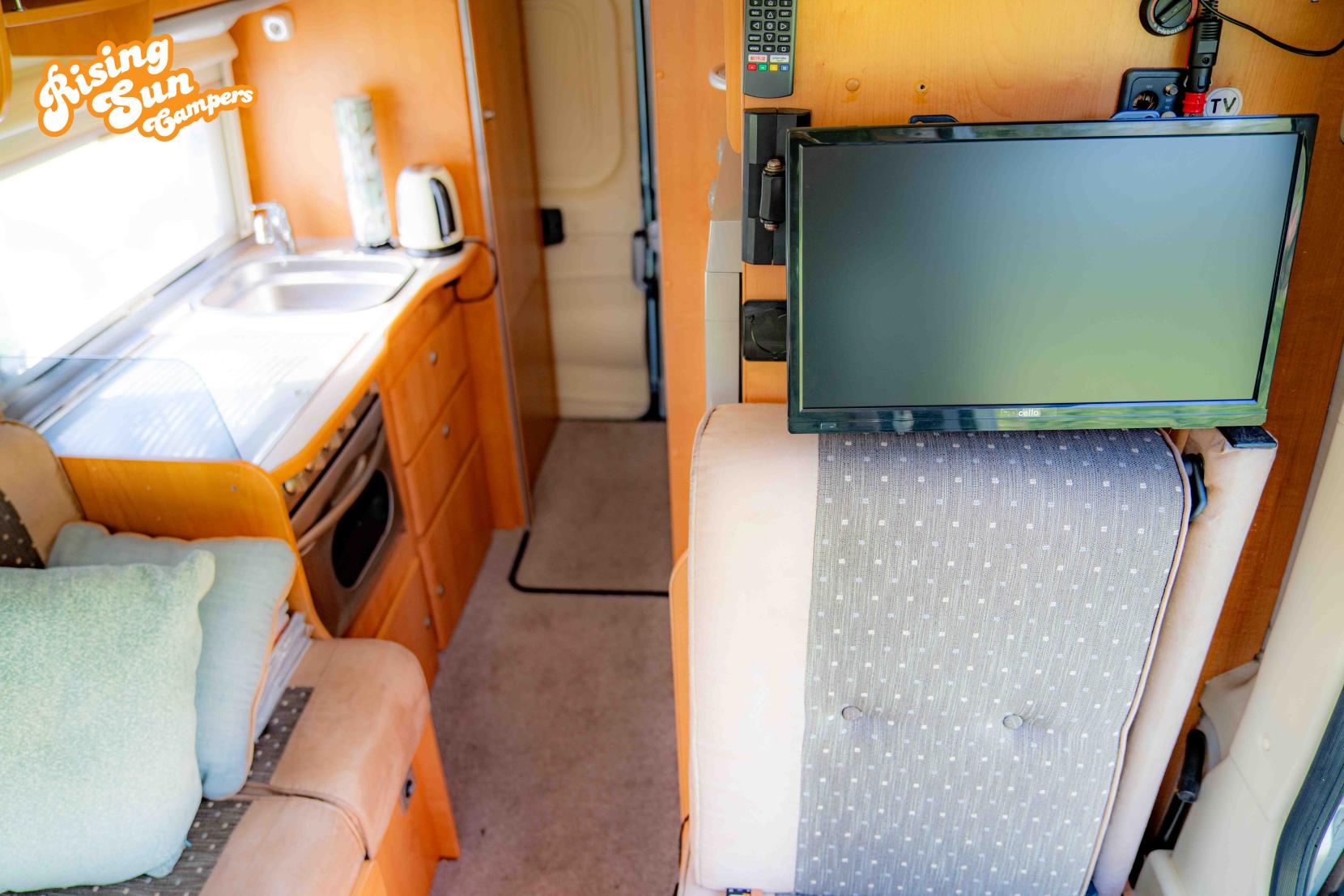 Water heating is by gas or electric and space heating is via a diesel powered unit. Fitted extras include a Fiamma Awning, a rear ladder and a TV.