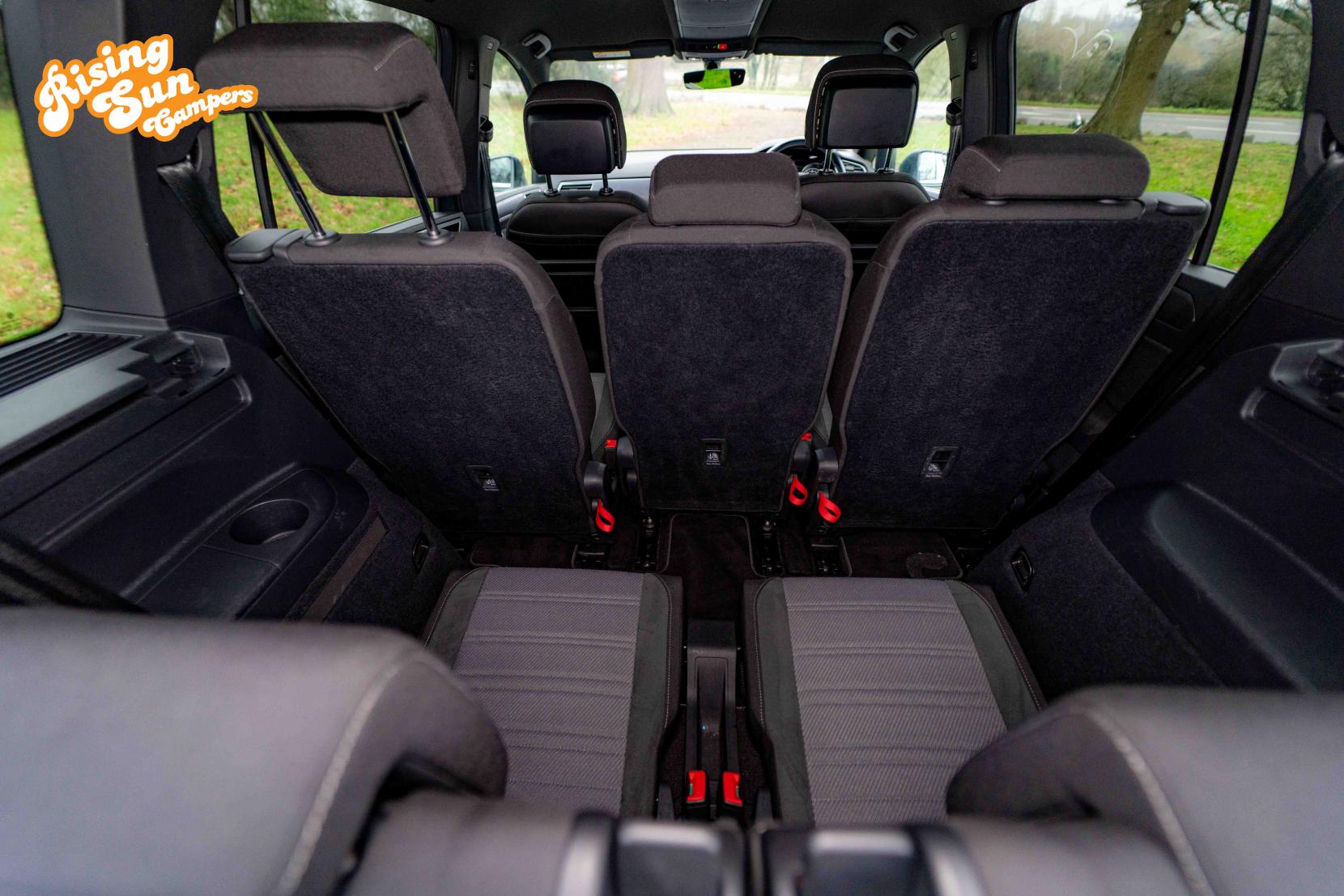2 Single Seats in the 3rd Row – Can Be Folded Flush into Floor of Luggage Compartment3 Single Seats in the 2nd Row with Forward and Backward Adjustments – Foldable3 Zone Electronic Climate Control with Automatic Air Recirculation5 Rear Head RestraintsAmbient LightingArmrest – Front Centre with Storage CompartmentAutomatic Dimming Interior Rear View MirrorBlack Lead Grey Look Decorative Inserts in Dash – Centre Console and Front DoorsBlack RoofliningCarpet Mats – Front and RearCentre Armrest 2nd RowChrome Plated Instrument SurroundsConvenience PackCup Holders – Front x2Driver Profile SelectionDrivers Seat Height AdjustmentDrivers and Front Passengers Four Way Adjustable Head RestraintsDrivers and Front Passengers Safety Optimised Head RestraintsDrivers and Front Passengers Under Seat DrawerFolding Table on Back of Front SeatsFront Comfort Seats with Lumbar AdjustmentFront Passengers Seat Folding BackrestFront Passengers Seat Height AdjustmentFront Seat Back Storage PocketsGalvanised BodyGlovebox – IlluminatedHeight and Reach Adjustable Steering WheelInstrument Lighting – White Adjustable Panel Illumination with Red Night-Time IlluminationInterior Light DelayLarge Storage Box in Roof ConsoleLeather Trimmed Gear KnobLeatherette on Rear of Both Front SeatsLoad Lashing Points x4 in Luggage CompartmentLow Tunnel Second Row SeatLuggage Compartment Cover – Retractable and RemovableLuggage Compartment LightMedia Box in Passenger Side of DashboardMultifunction Centre Console with Storage Box – Height Laterally AdjustableMultiple Storage Compartments in Passenger and Luggage AreasRain SensorReading Lights – Front x2 and Rear x2Seats – Folding Rear BackrestStainless Steel PedalsSteering Wheel – Multifunction – Leather TrimmedStorage Compartments in all DoorsUnique R-Line Door Sill ProtectorsVanity Mirrors – IlluminatedWindscreen Wiper with Intermittent Wipe