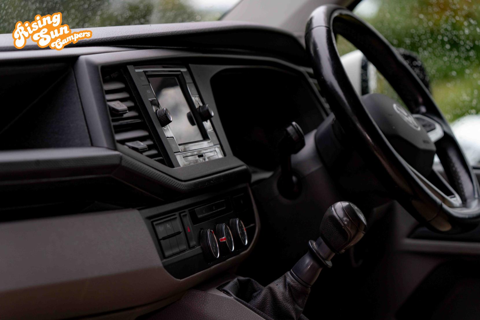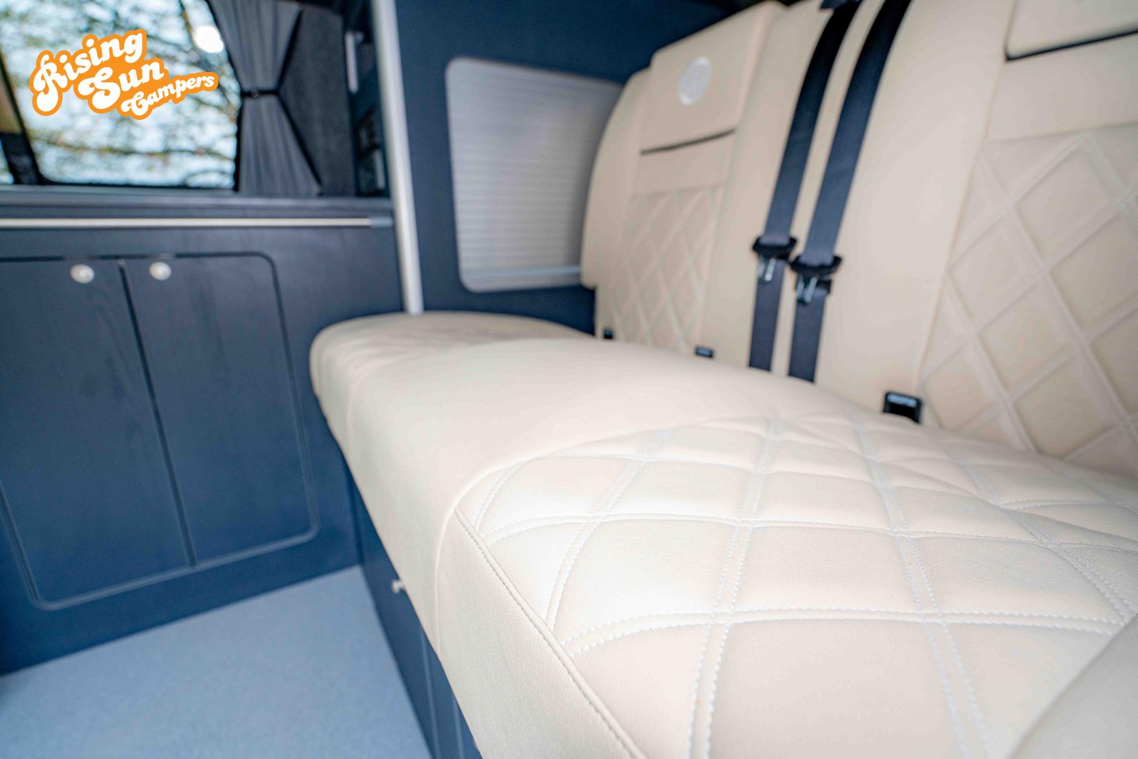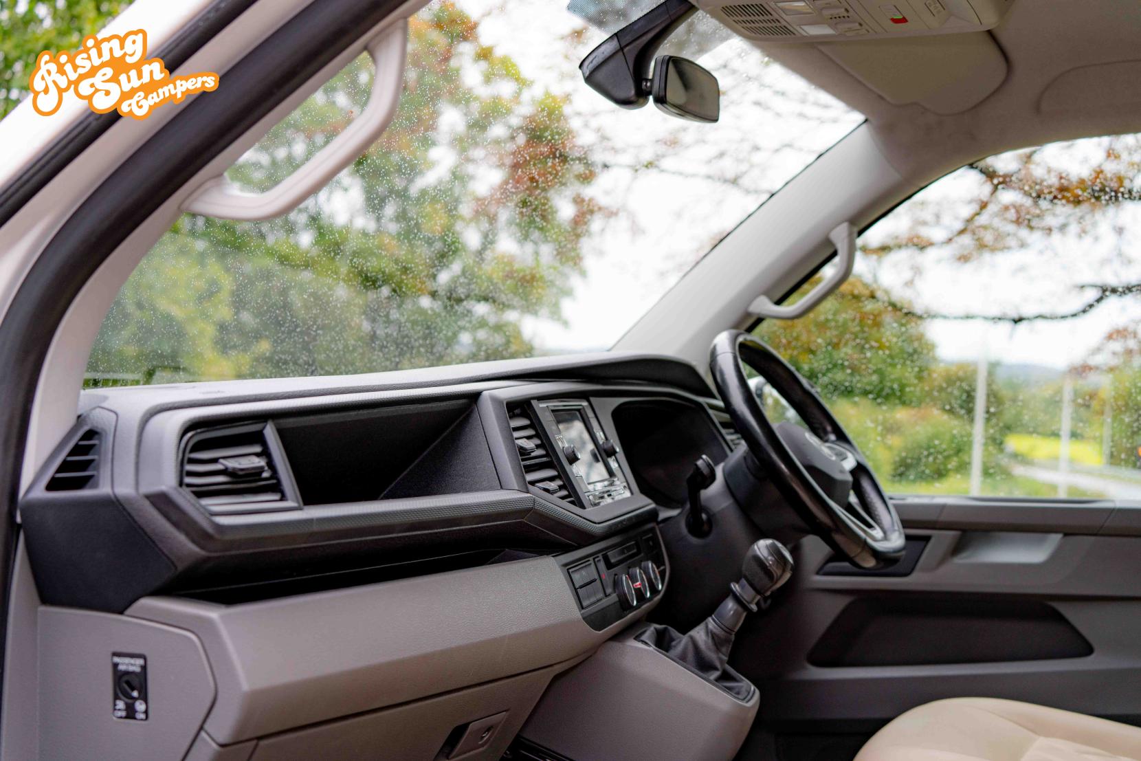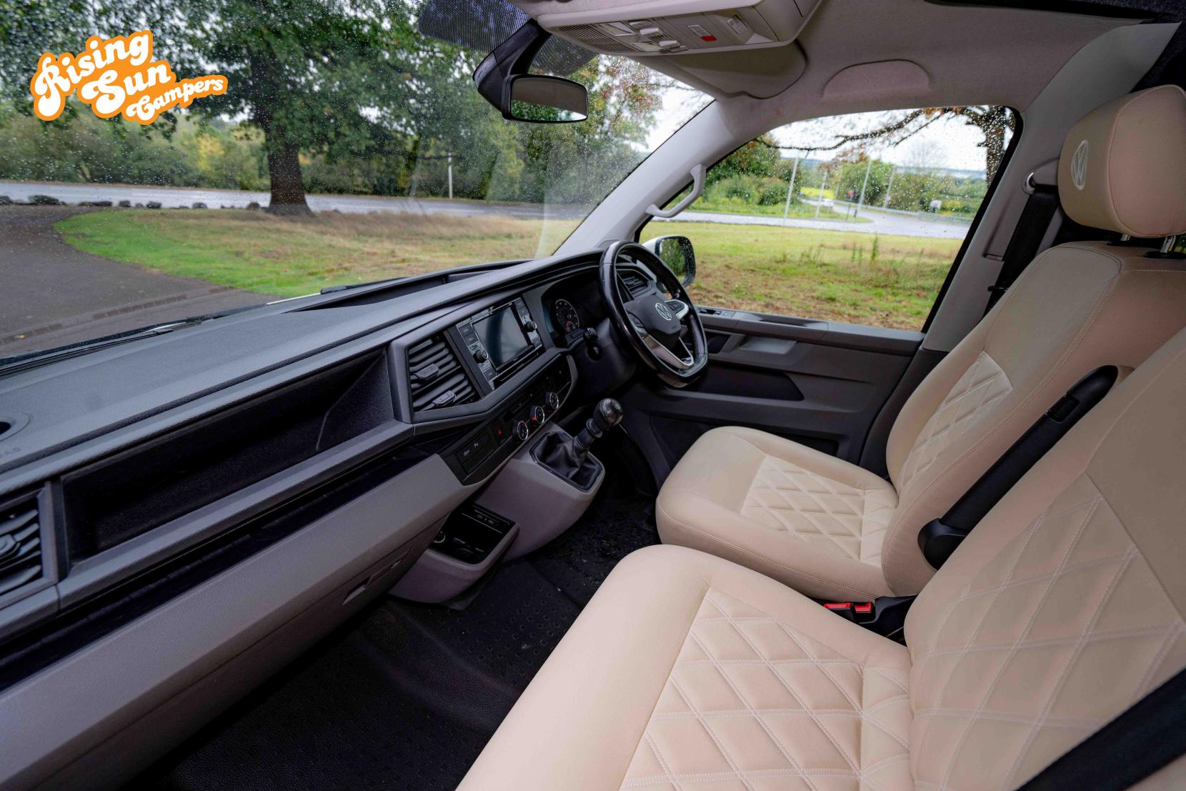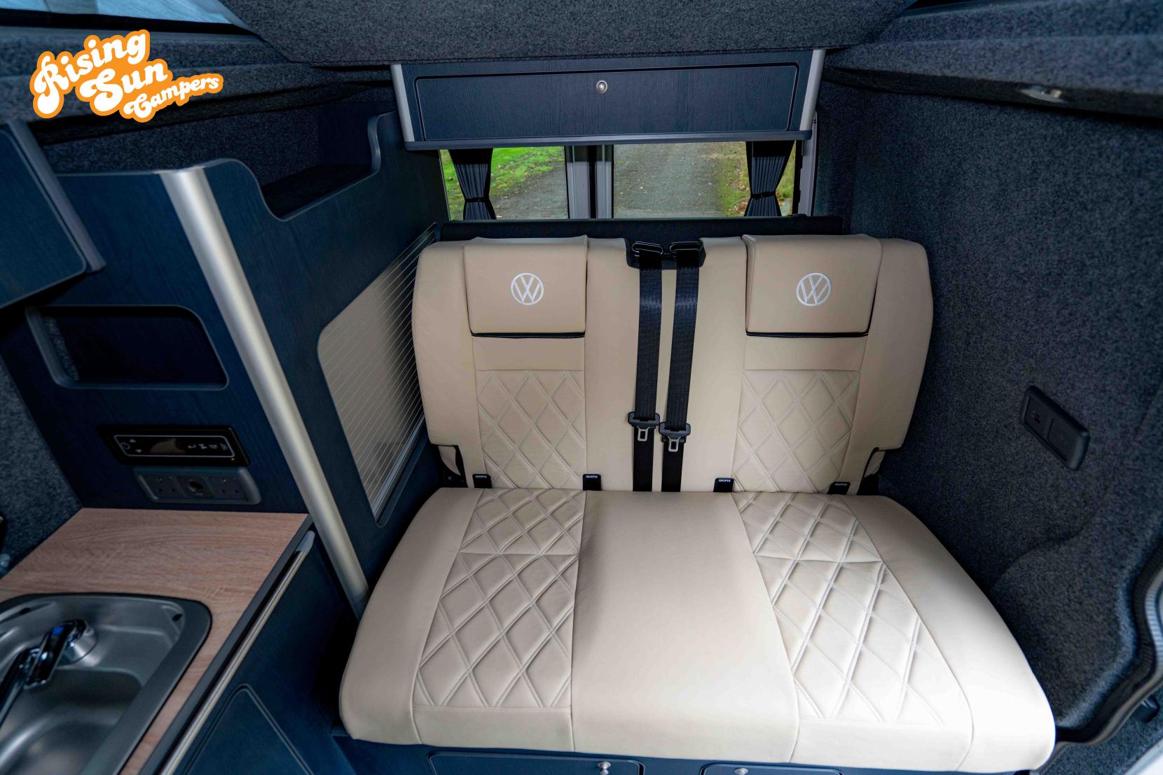 The signature conversion includes the following items:1 fixed window in privacy tint including curtain, 1 Sliding window in privacy tint including curtain, Complete van carpet lining, Plylining, Insulation, Victron B2B Charger, 110ah Leisure battery, Hardwearing Altro flooring in dolhpin, 4 LED spot lights, Power management system including integrated 240v battery charger and , External hookup housed neatly under the bonnet (No eyesores on the outside of your van), 1 x 12v Berker power outlet, 2 x Berker 240v socket, 1 x Berker USB socket, Touch screen power management interface, Signature furniture in lightweight plywood, Smev hob and sink combination unit inc tap, Sealed, steel gas locker & Regulator, Fresh water, waste pipes and submersible pump, Removable water tank (To allow easy filling at the campsite), 112cm RIB crash tested bed trimmed in toffee vinyl, 1 double Swivel base , Vinyl upholstery on front seats, 50 litre Fridge. Includes Austops elevating roof with roof bed. Seats and bed trim can be changed if not to your taste.