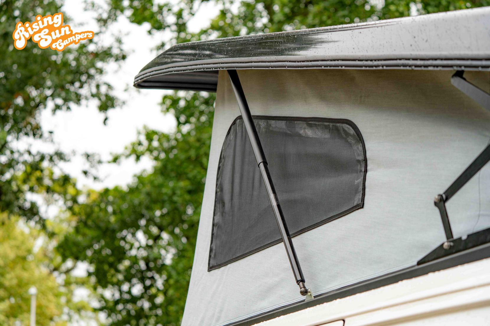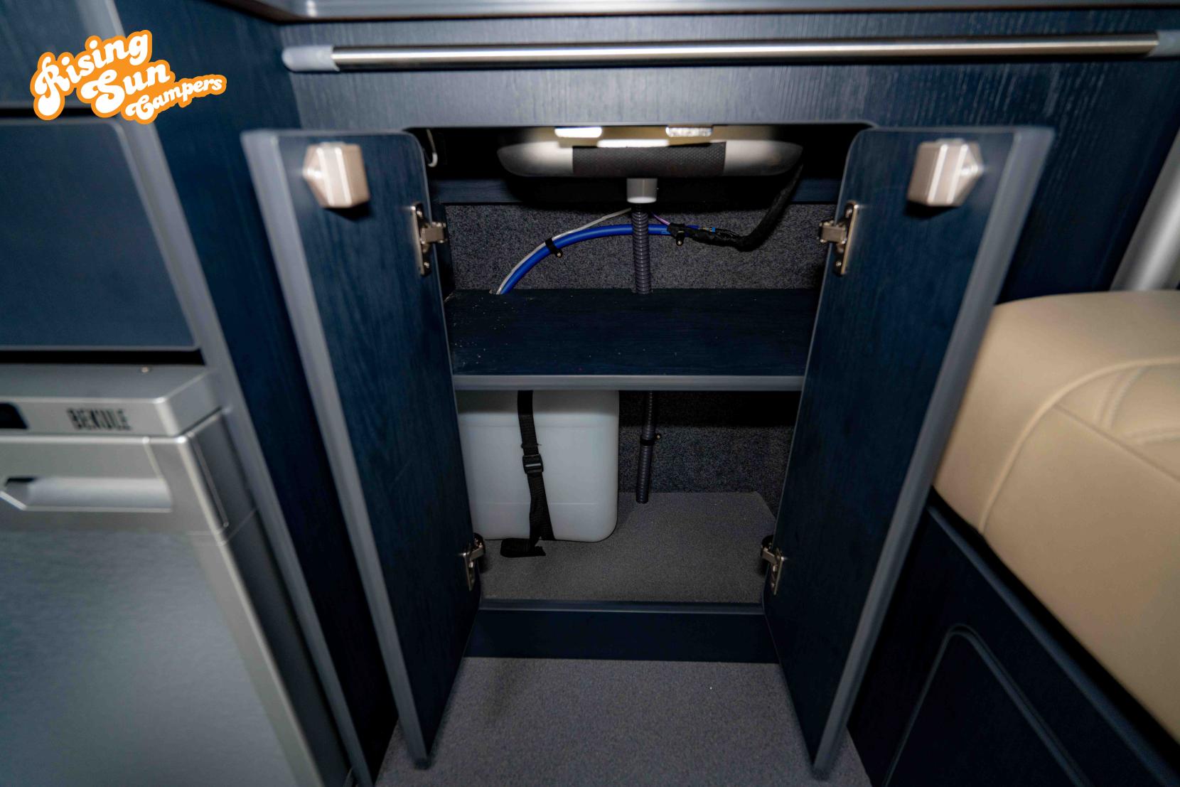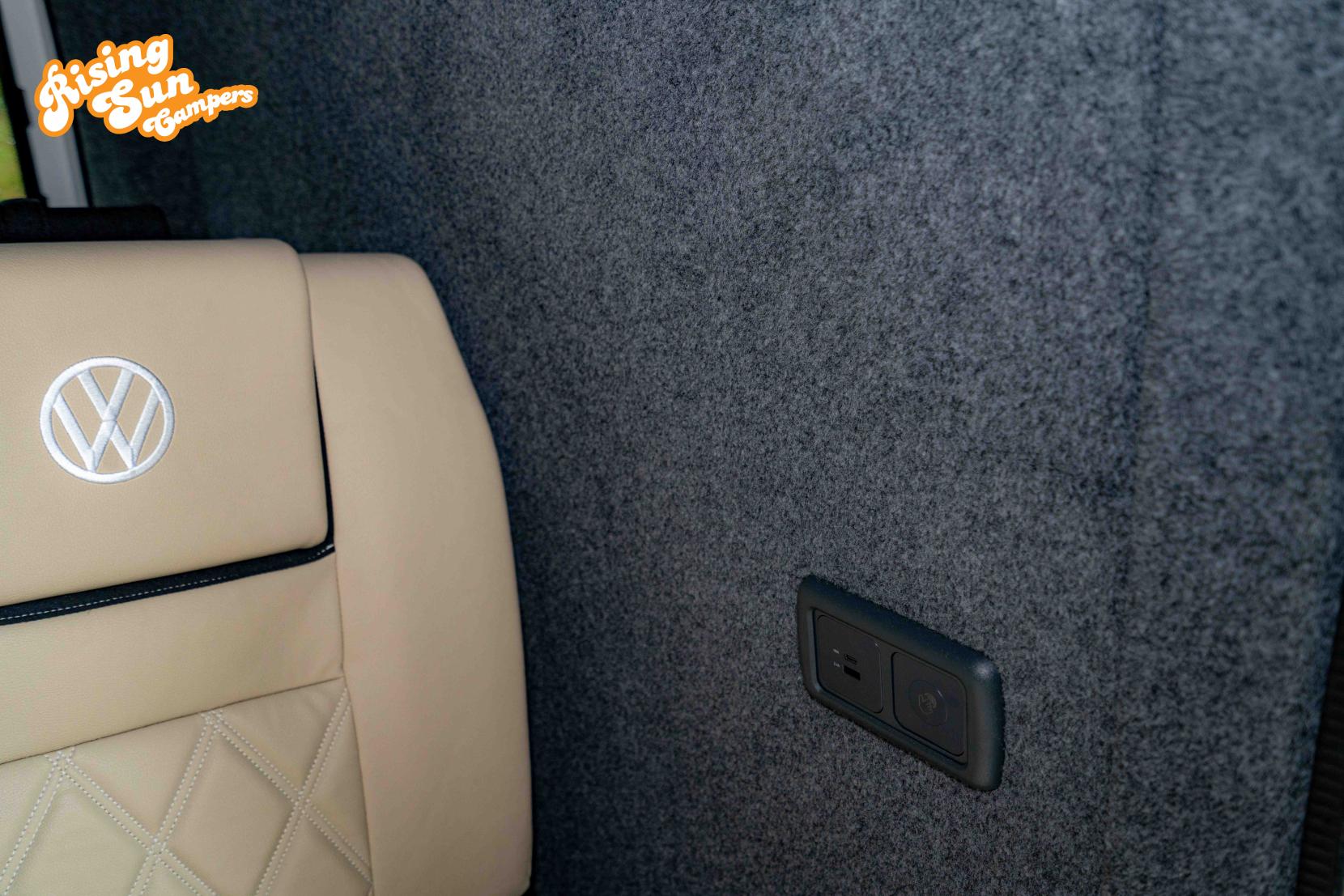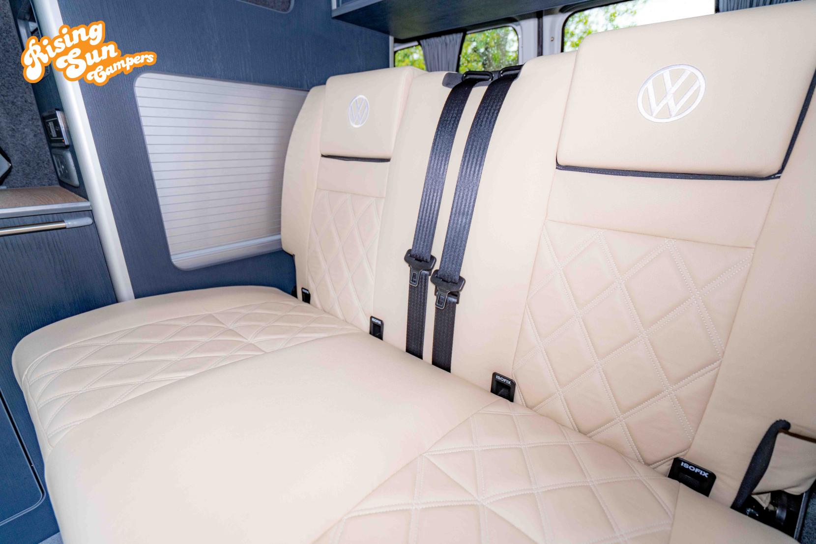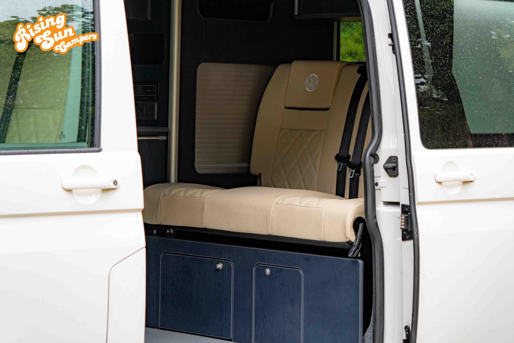 The signature conversion includes the following items:1 fixed window in privacy tint including curtain, 1 Sliding window in privacy tint including curtain, Complete van carpet lining, Plylining, Insulation, Victron B2B Charger, 110ah Leisure battery, Hardwearing Altro flooring in dolhpin, 4 LED spot lights, Power management system including integrated 240v battery charger and , External hookup housed neatly under the bonnet (No eyesores on the outside of your van), 1 x 12v Berker power outlet, 2 x Berker 240v socket, 1 x Berker USB socket, Touch screen power management interface, Signature furniture in lightweight plywood, Smev hob and sink combination unit inc tap, Sealed, steel gas locker & Regulator, Fresh water, waste pipes and submersible pump, Removable water tank (To allow easy filling at the campsite), 112cm RIB crash tested bed trimmed in toffee vinyl, 1 double Swivel base , Vinyl upholstery on front seats, 50 litre Fridge. Includes Austops elevating roof with roof bed. Seats and bed trim can be changed if not to your taste.