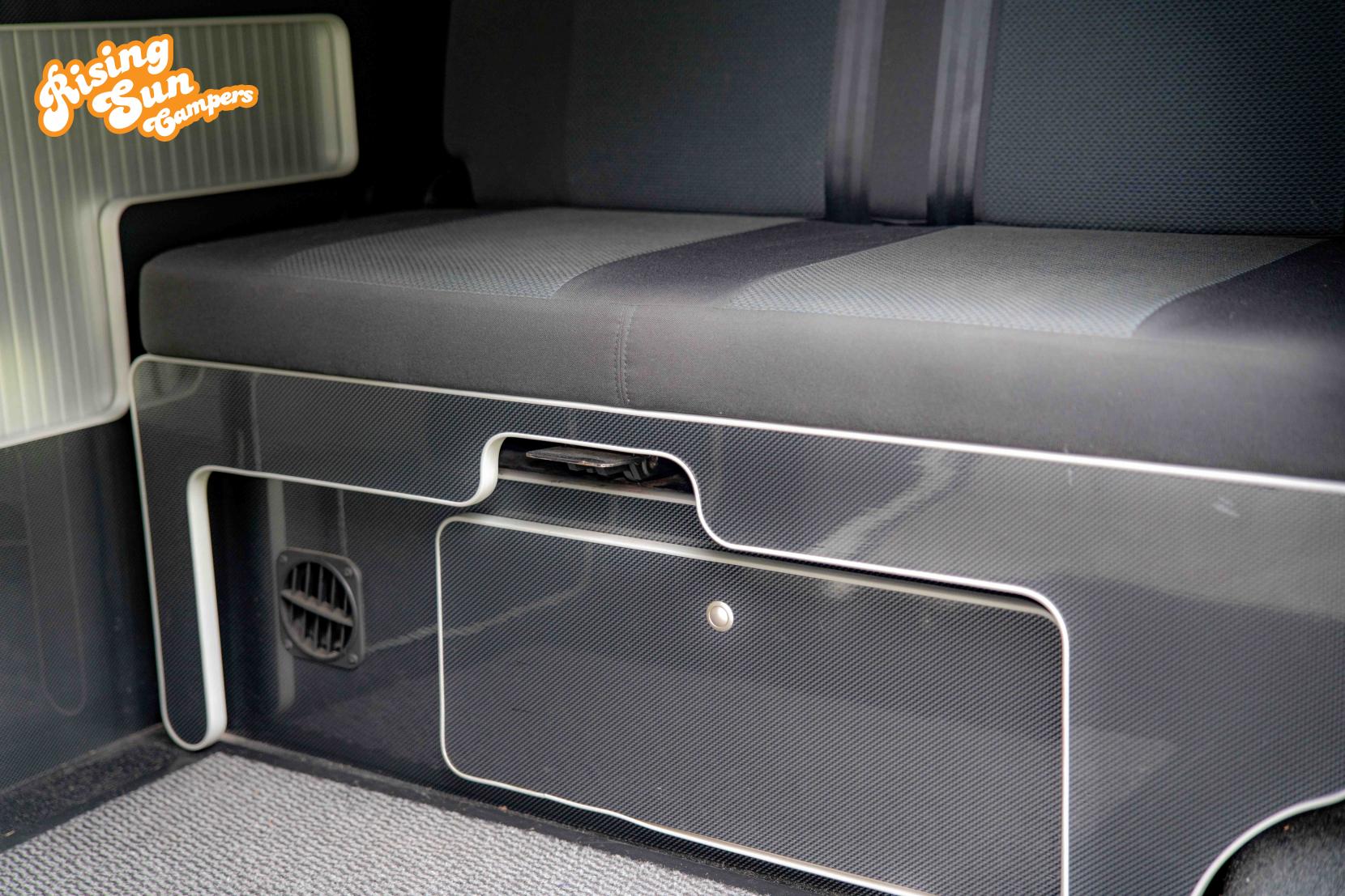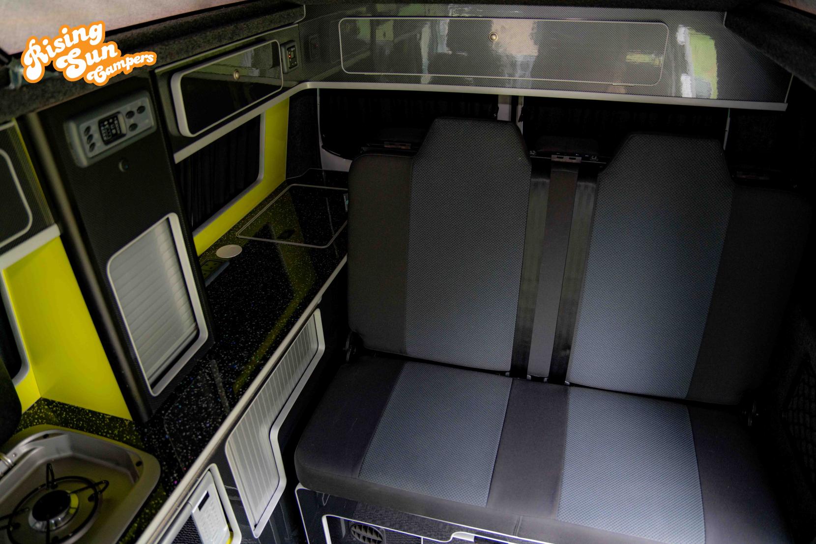 The low level furniture give a great feeling of space and great visibility when camping and driving.
