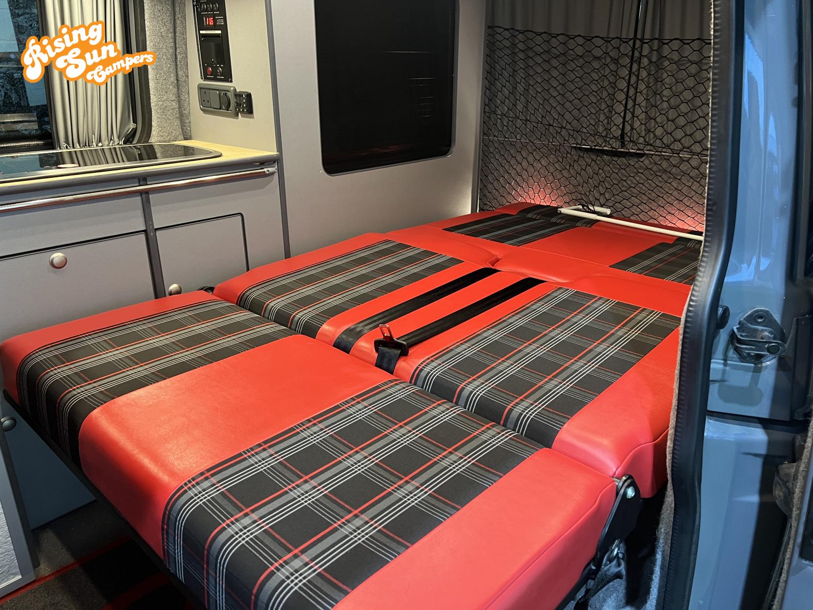With handy tambour doors allowing easy access into large storage areas, matching table and rail and bed boards this conversion has everything you need to get your camping season started.