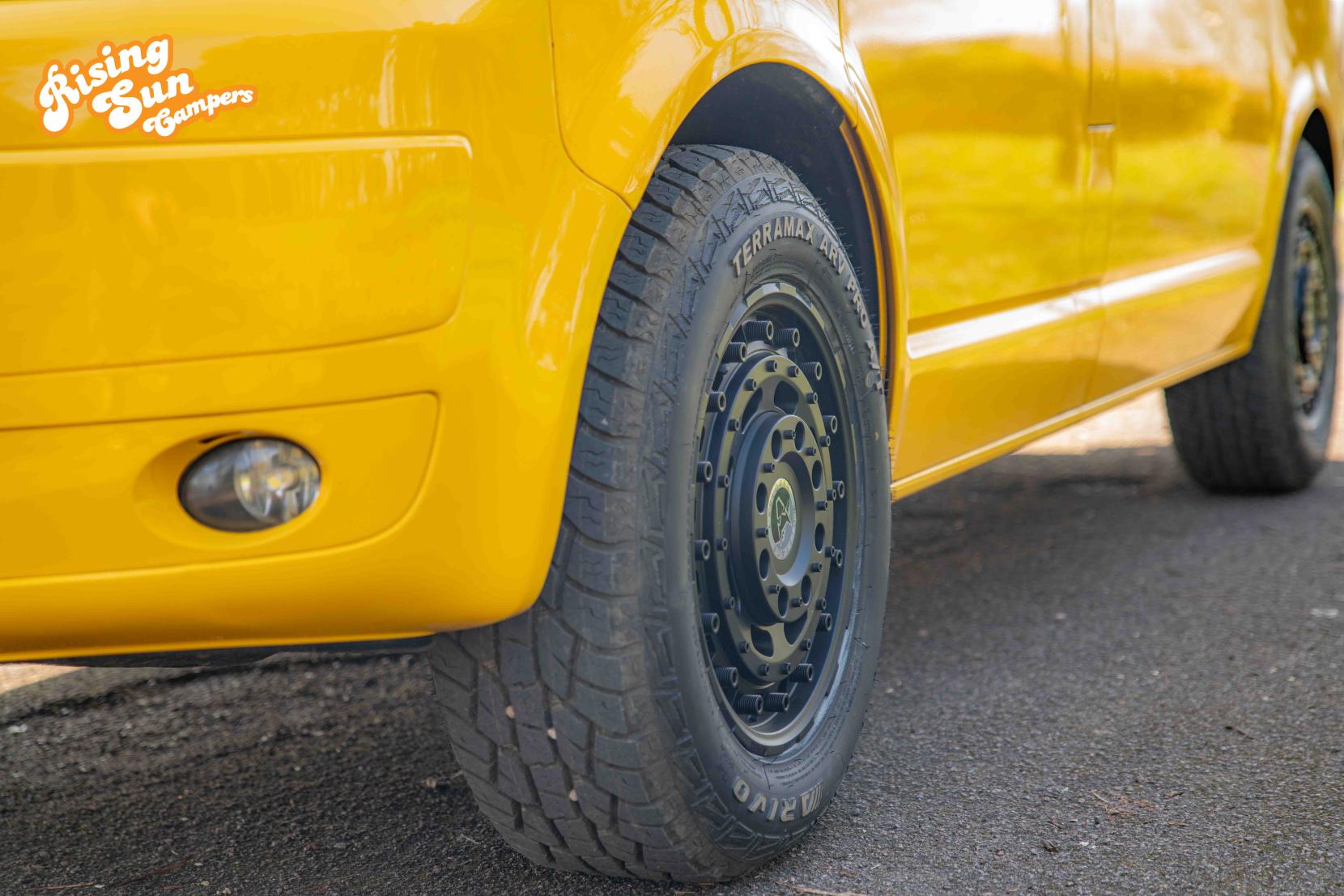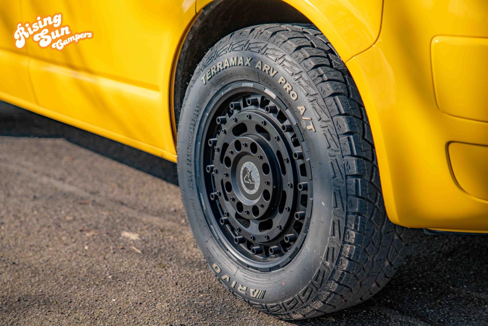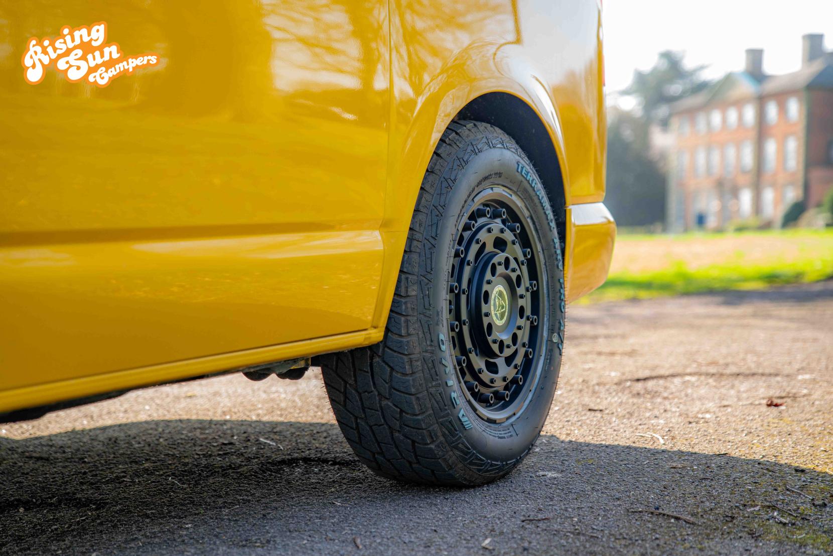 – Brand New wolfrace 18″ alloys fitted with All terrain tyres with compliment the 4 wheel drive system perfectly. Nationwide, contactless delivery also available. e-mail us at info@risingsuncampers.co.uk